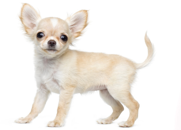 У этой мини-породы очень элегантный внешний вид и компактное тело. Череп у собаки небольшой, у основания расширяется, у носа сужается. Носик короткий и аккуратный, смотрит вверх. У чихуахуа красивые и крупные глаза, в основном они темного цвета. Большие стоячие уши закругляются вверху. Спина мускулистая, грудная клетка объемная. Хвост у собаки расположен высоко, он довольно длинный и толстый, кверху закруглен. Передние лапы у псов длинные и прямые, в них нет мышечной массы, они очень тонкие и слабые в отличие от задних лап, те крепкие, с хорошо развитыми суставами. Собаки бывают гладкошерстные и длинношерстные. Окрас встречается самый разный – рыже-красный, светло-рыжий, черный, шоколадный, белый, тигровый и даже сиреневый. Самым необычным считается серебристо-серый цвет с синеватым отливом. Он встречается очень редко, и таких представителей не прививают, потому что это может привести к серьезным заболеваниям.